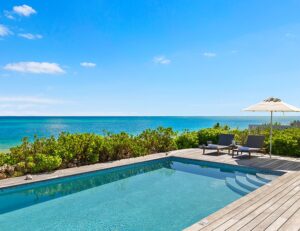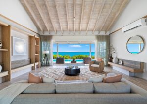 The Ocean View Suite boasts a bedroom, kitchenette, bathroom, and a spacious terrace with stunning ocean views. The bedroom, offering direct ocean views, features a king bed and large sliding glass doors that open out onto the terrace. The bathroom is equipped with a large soaking tub, an oversized walk-in shower, a water closet, and a double vanity. Positioned on a ridgetop above the Beachfront Villas, homeowners enjoy expansive views of the Atlantic Ocean or Caicos Bank. Centrally located close to Sailrock Resort’s amenities and the Great House Restaurant + Bar, this suite offers a prime opportunity for island investment.