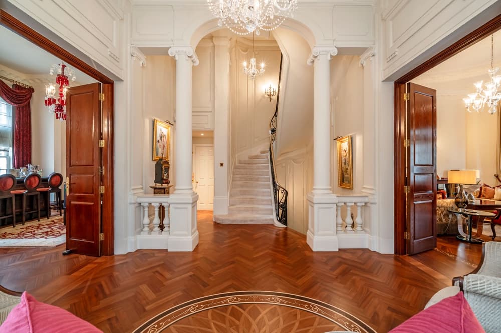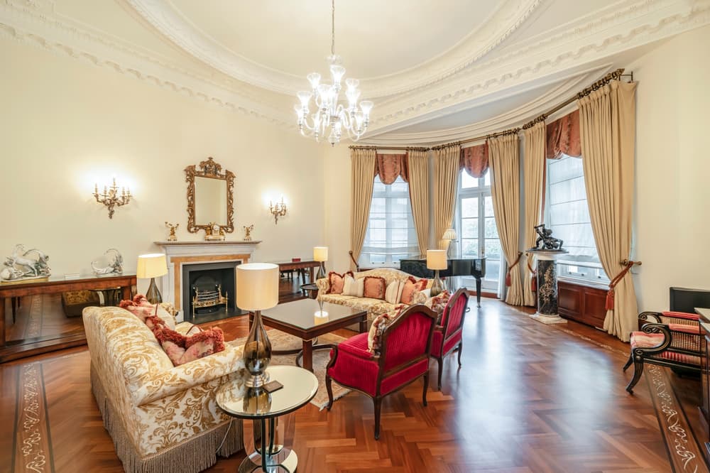 This historic property, built in 1857, lies on Park Lane and is one of only two mansions on one of London’s most prestigious streets. Its many balconies provide stunning views of the awe-inspiring natural beauty of Hyde Park. The living space, including six double bedrooms, a cocktail bar on the first floor, a cinema, a home spa, and a fifteen-metre swimming pool.Show all descriptionThe mansion is characterised by its French elegance, which is evident as soon as you enter; an exquisite Baccarat crystal dominates the grand entrance hall. Lofty thirteen-foot ceilings prevail, through a formal dining room with a marble fireplace and a finely crafted wood-panelled library. A lift, multiple balconies, and approval for a rooftop garden, only add to its grandeur.